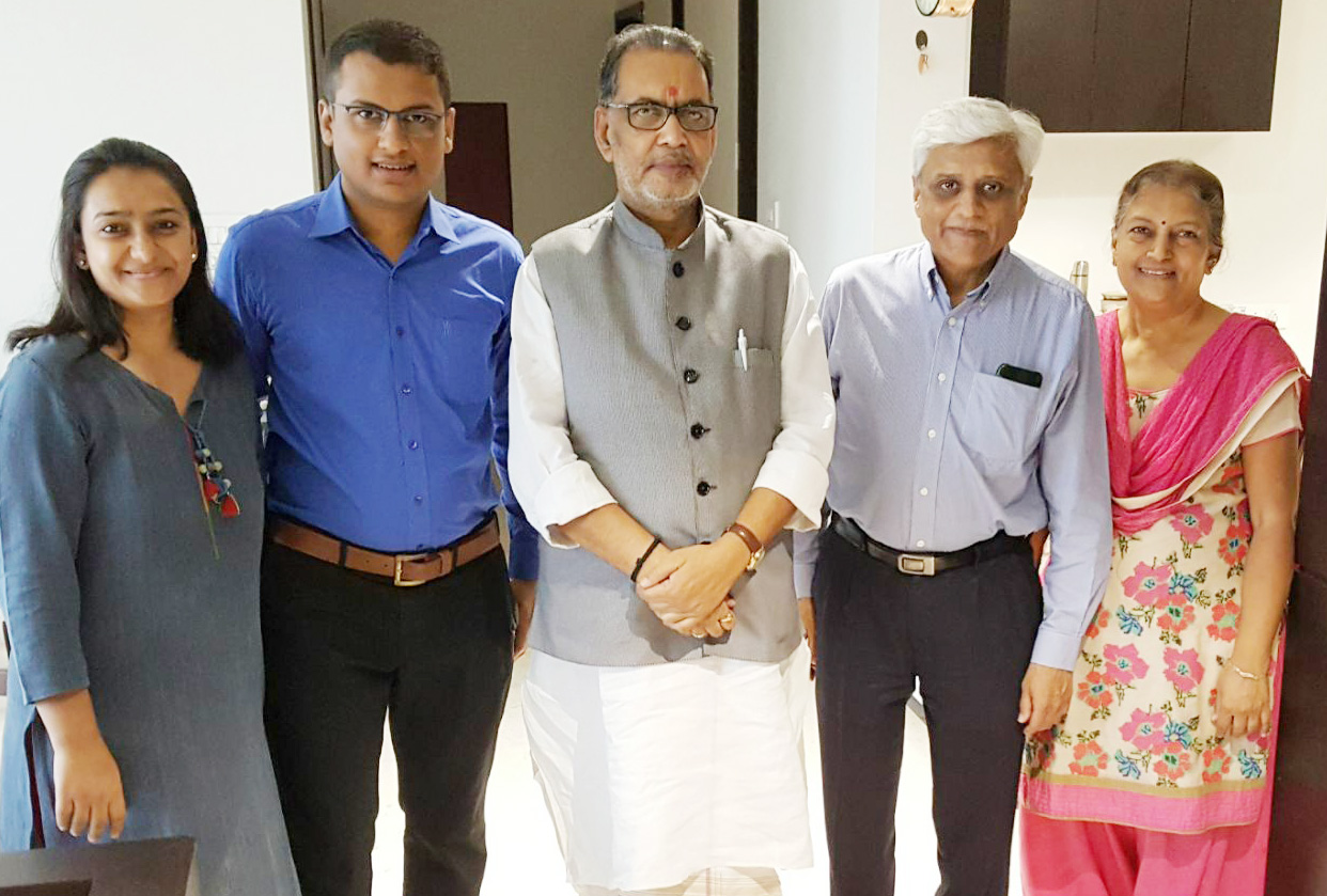 Sahakar Bharti patron Satish Marathe and Dr Uday Joshi had a photo session with the minister. Through his