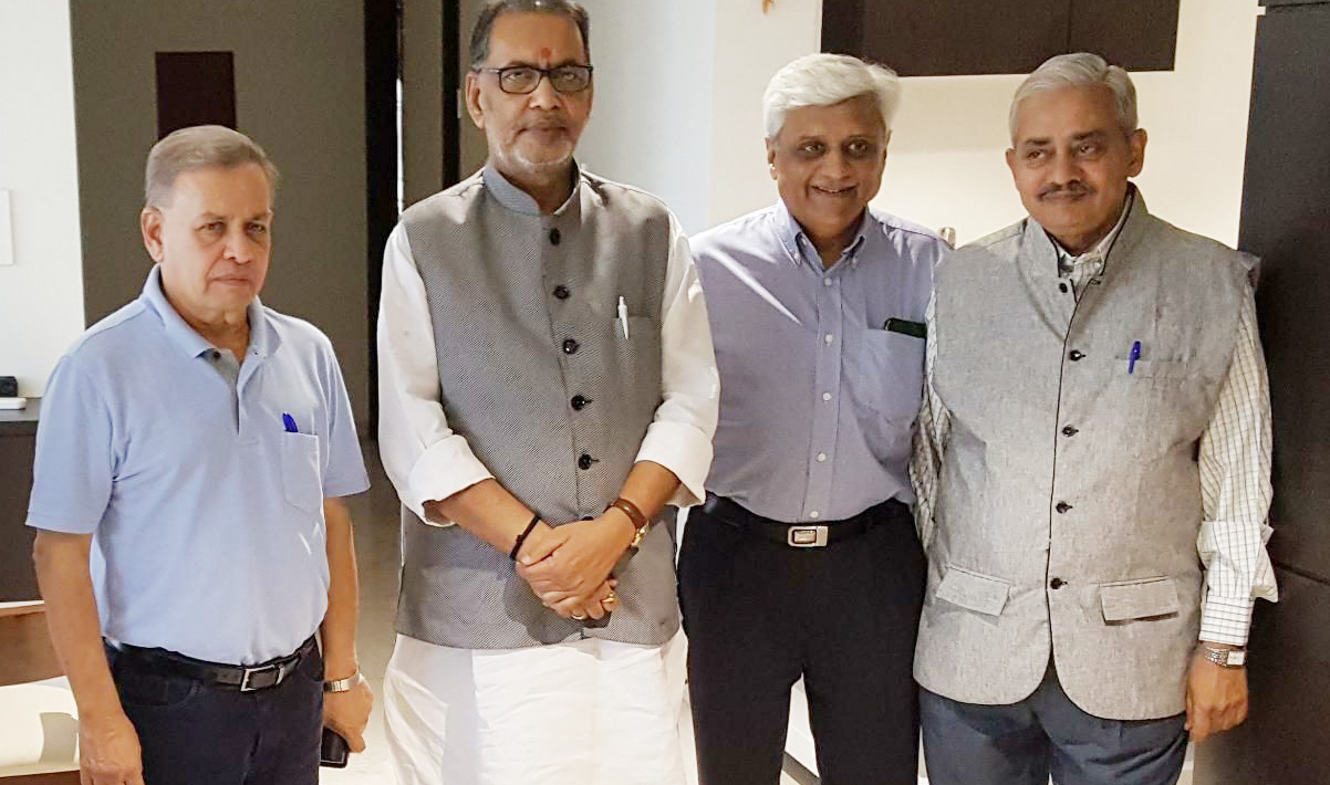 Sahakar Bharti patron Satish Marathe and Dr Uday Joshi had a photo session with the minister. Through his