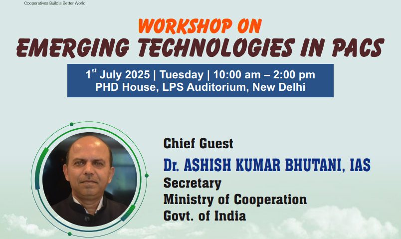 The event, a national conference titled “PACS and Emerging Technology”, will be held at the PHD Convention Hall, Siri Institutional Area, New Delhi, beginning at 9:50 AM. It will focus on the transformative potential of emerging technologies in strengthening Primary Agricultural Credit Societies (PACS).