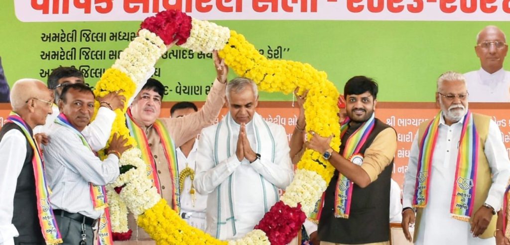 Amreli MLA Kaushikbhai Vekariya praised Sanghani’s transparent leadership in cooperative activities, noting that his efforts are now receiving national recognition. MP Bharatbhai Sutiya also lauded Sanghani’s role in revitalizing the cooperative sector, which he said is vital for the economic progress of farmers in the district.