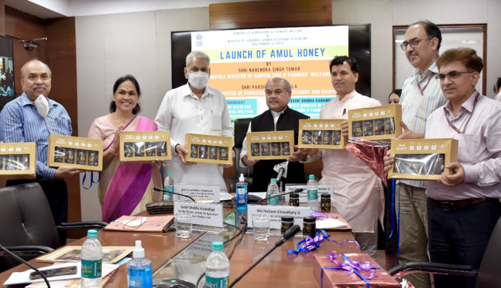 Narendra Singh Tomar, Union Minister of Agriculture, Parshottam Rupala, Union Minister of Fisheries, Animal Husbandry and Dairying, Kailash Chaudhary, MoS for Agriculture & Farmers’ welfare and Sushri Shobha Karandlaje, MoS for Agriculture & Farmers’ welfare have virtually launched the “Amul Honey” from New Delhi.