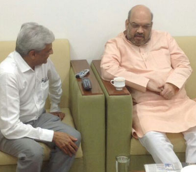 Mehta used whats app to send a massage as well as photographs of his meeting with Shah. The massage read ”congratulated Amitbhai on his becoming president of BJP. Also discussing problem of taxation on co-op banks at Gujarat Bhawan, Delhi.”