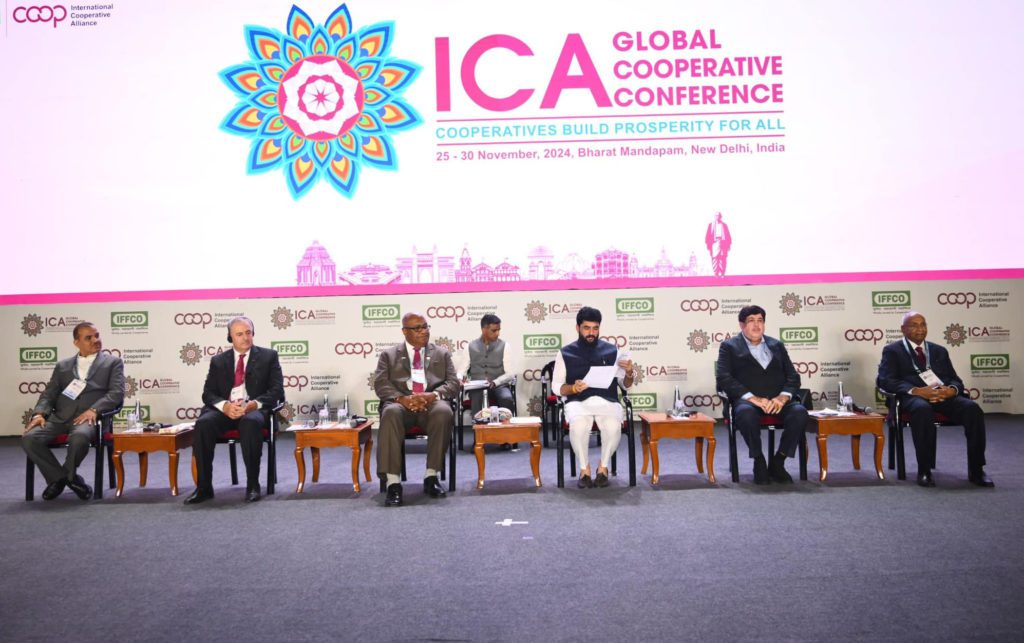 The New Delhi Action Agenda on the Future of Cooperatives: Creating Prosperity for All was presented by ICA Director-General Jeroen Douglas. He announced the launch of the UN International Year of Cooperatives 2025, emphasizing the power of cooperatives to address global challenges such as inequality, climate change, and conflict.