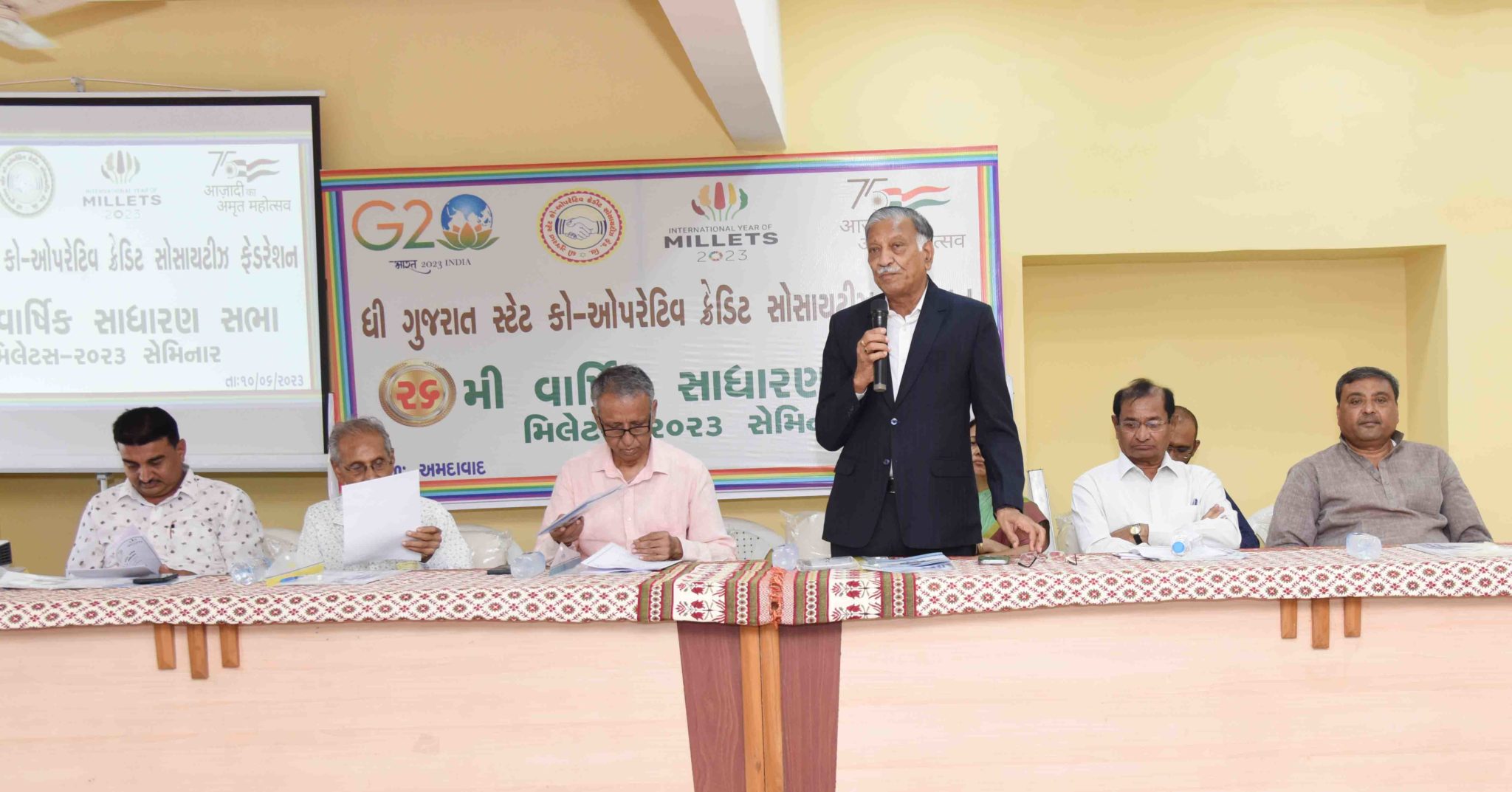 JJ Shah, the retired Joint Registrar, Co-operative Societies, Gujarat State also discussed the issues related to credit societies and their members and resolution of problems facing them. In this seminar, a booklet containing the information about millets and their recipes was distributed to the members.