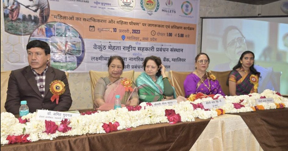 India’s apex co-op institute VAMNICOM conducted a half-day awareness cum training program on “Empowerment of programme and Women Nutrition” in collaboration with Laxmi Bai Mahila Nagari Sahakari Bank at Gwalior in Madhya Pradesh last week.
