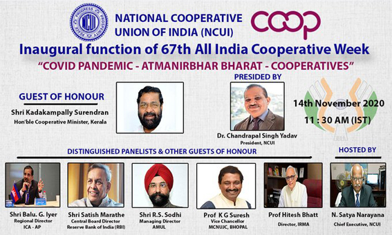 Believing that the co-operative model alone is capable of rewriting the fortune of India the 67th All India Cooperative Week’s theme is ‘Covid Pandemic-Atmanirbhar Bharat- Cooperatives”.