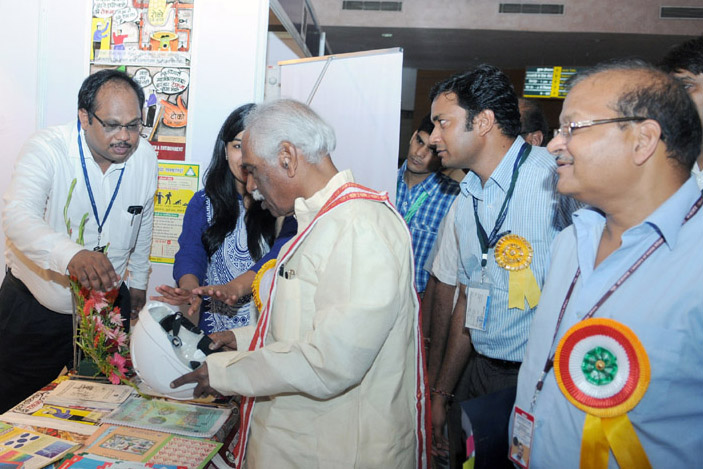 The Minister of State for Labour and Employment (Independent Charge), Shri Bandaru Dattatreya going round the exhibition, at the presentation of the Vishwakarma Rashtriya Puraskar and National Safety Awards (performance Year 2013), in New Delhi on September 17, 2015. The Secretary, Ministry of Labour and Employment, Shri Shankar Aggarwal is also seen.