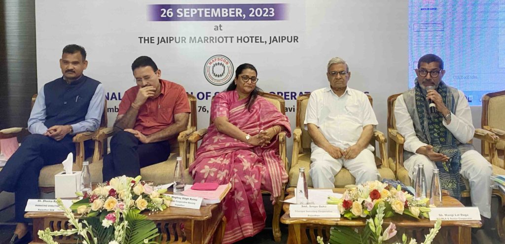 The meeting was attended by Principal Cooperation Secretary Shreya Guha, Rajasthan Cooperative Registrar Meghraj Singh Ratnoo, Rajasthan State Cooperative Bank MD Bhomaram, MD, representatives from State Cooperative Bank, DCCBs, PACS and others.