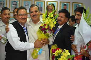 Supporters surrounded Chandra Pal as soon as new Governing Council members elected him President unanimously. Garlands of flowers nearly choked him with everyone being in the race to be the first to honour the leader. GC members, women cooperators, NCUI staffs and cooperators cutting across various societies from across the country have turned in large number to congratulate him.