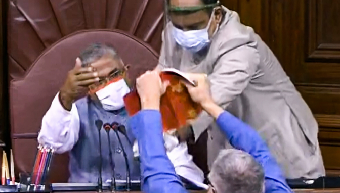 Despite such categorical statements from the Prime Minister there are some vested interests active to misguide farmers, say experts like Mohandas Pai and Anand Panagariya. TMC’s Derek Obrien invaded the well of the Rajya Sabha and tore ears of the rule book during Farmer Bills voting, speaker’s mike snatched amid pandemonium.