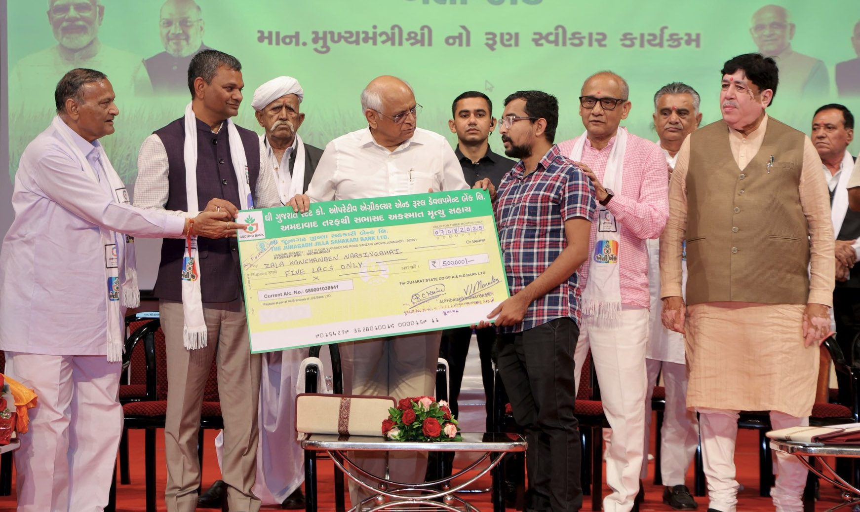 The ceremony saw several touching moments, the CM personally handed over a cheque of Rs 5 lakh to the son of a deceased loanee, felicitated the bank’s best-performing district, and blessed Brand Ambassador Ms. Nirma Thakor as she prepared to represent Gujarat at the Moscow Marathon.