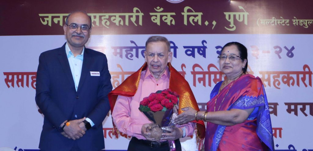 While Janata Sahakari Bank CEO Jagdish Kashyap, Vice President Alka Petkar were on the dais, senior banking expert Jayant Kakatkar, Administrator of Maharashtra State Cooperative Bank Vidyadhar Anaskar, Vice President of Maharashtra Urban Co-operative Bank Federation Vaishali Awade, President of Pune District Urban Co-operative Bank