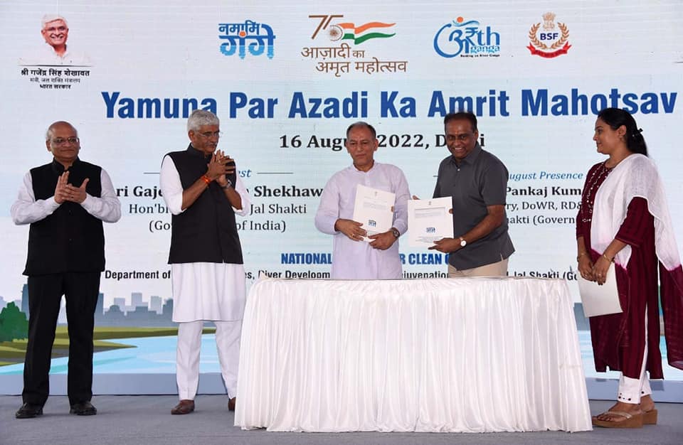 Union Minister for Jal Shakti, Shri Gajendra Singh Shekhawat on Tuesday presided over the event ‘Yamuna Par Azadi Ka Amrit Mahotsav’ organised by National Mission for Clean Ganga (NMCG), Department of Water Resources, River Development and Ganga Rejuvenation, Ministry of Jal Shakti.