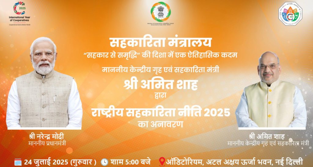 Union Home and Cooperation Minister Amit Shah will unveil the much-anticipated National Cooperative Policy 2025 at a high-profile event on July 24 at Atal Akshay Urja Bhawan in New Delhi. The policy, which has been in the making for several months, is set to shape the cooperative movement in India for the next two decades, from 2025 to 2045.
