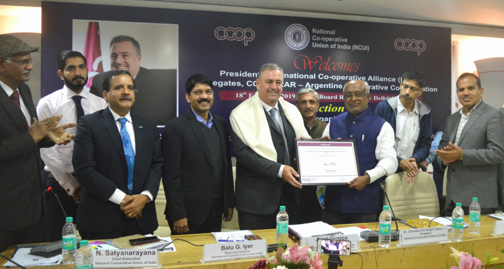 On the occasion of the visit of ICA President Ariel Guarco to NCUI headquarters in Delhi on Monday ULCCS-Uralungal Labour Contract Co-operative Society- based at Vadakara in Kerala received the membership to the global body in a glittering event.