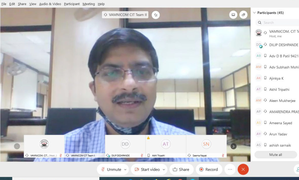 The program was coordinated by Prof D V Deshpande of VAMNICOM. About 60 officials from banks, financial institutions and other stakeholders participated in the program.