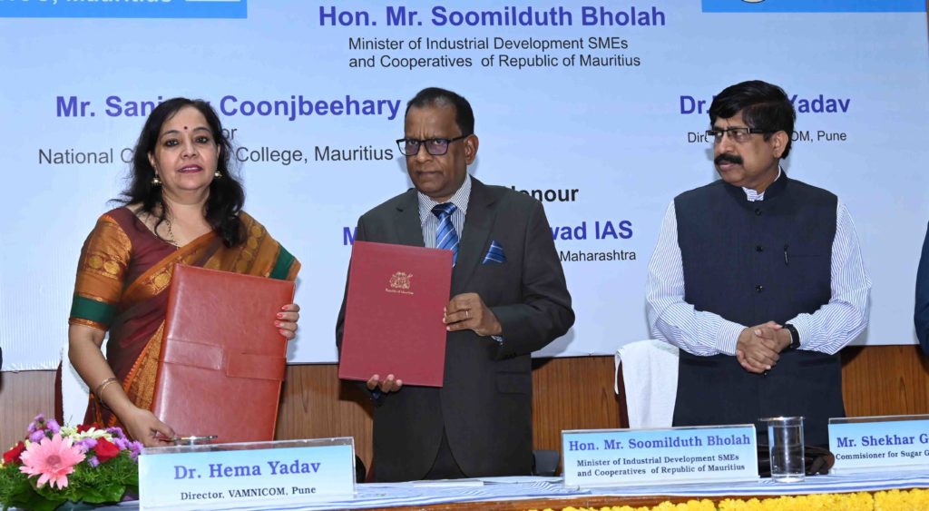 An MOU was signed between VAMNICOM and National Cooperative College, Mauritius, in which both training Institutes have agreed to cooperate and collaborate in the areas of training and education of cooperatives.