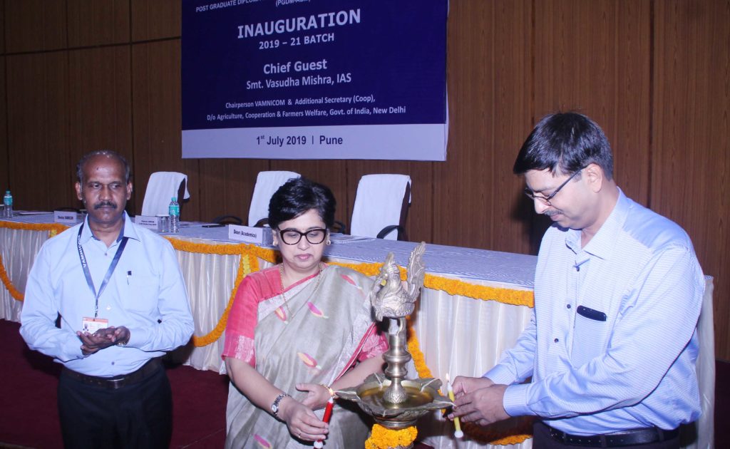 An inaugural function of Post Graduate Diploma (PGDM)- Agri-Business Management (ABM) was held recently at Vaikunth Mehta National Institute of Cooperative Management (VAMNICOM), Pune, in which Vasudha Mishra, IAS and the Chairperson VAMNICOM was the chief guest.