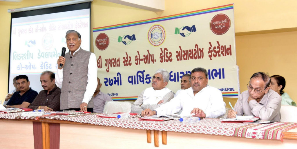 The 27th Annual General Meeting (AGM) of Gujarat State Co-operative Credit Societies Federation Ltd., along with the Leadership Development Program (LDP), was held on August 13, 2024, at the head office of Gujarat State Co-operative Union in Ahmedabad. G H Amin, Chairman of the Gujarat State Co-operative Union and Founder Chairman of the Federation, presided over the meeting.