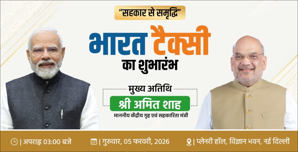 The Ministry of Cooperation is set to launch Bharat Taxi, a cooperative-based mobility initiative, at a formal programme scheduled to be held on Thursday, February 5, 2026, at the Plenary Hall of Vigyan Bhawan, New Delhi. The event will be inaugurated by Union Home and Cooperation Minister Shri Amit Shah, who will attend as the Chief Guest and address the gathering.