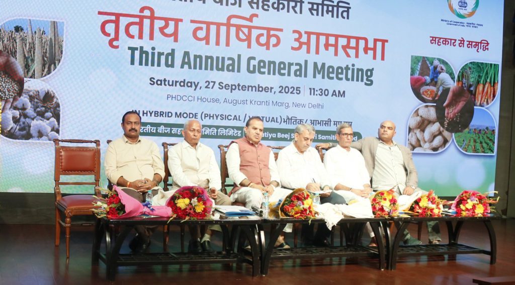 The Third Annual General Meeting (AGM) of Bharatiya Beej Sahakari Samiti Limited (BBSSL) was convened on 27 September 2025 at the PHD Chamber of Commerce and Industry (PHDCCI), New Delhi, in a hybrid format. The gathering brought together the Board of Directors, representatives from Primary Agricultural Credit Societies (PACS), and cooperative institutions from across India, providing a platform to review past performance, deliberate on future strategy, and reinforce cooperative synergies.