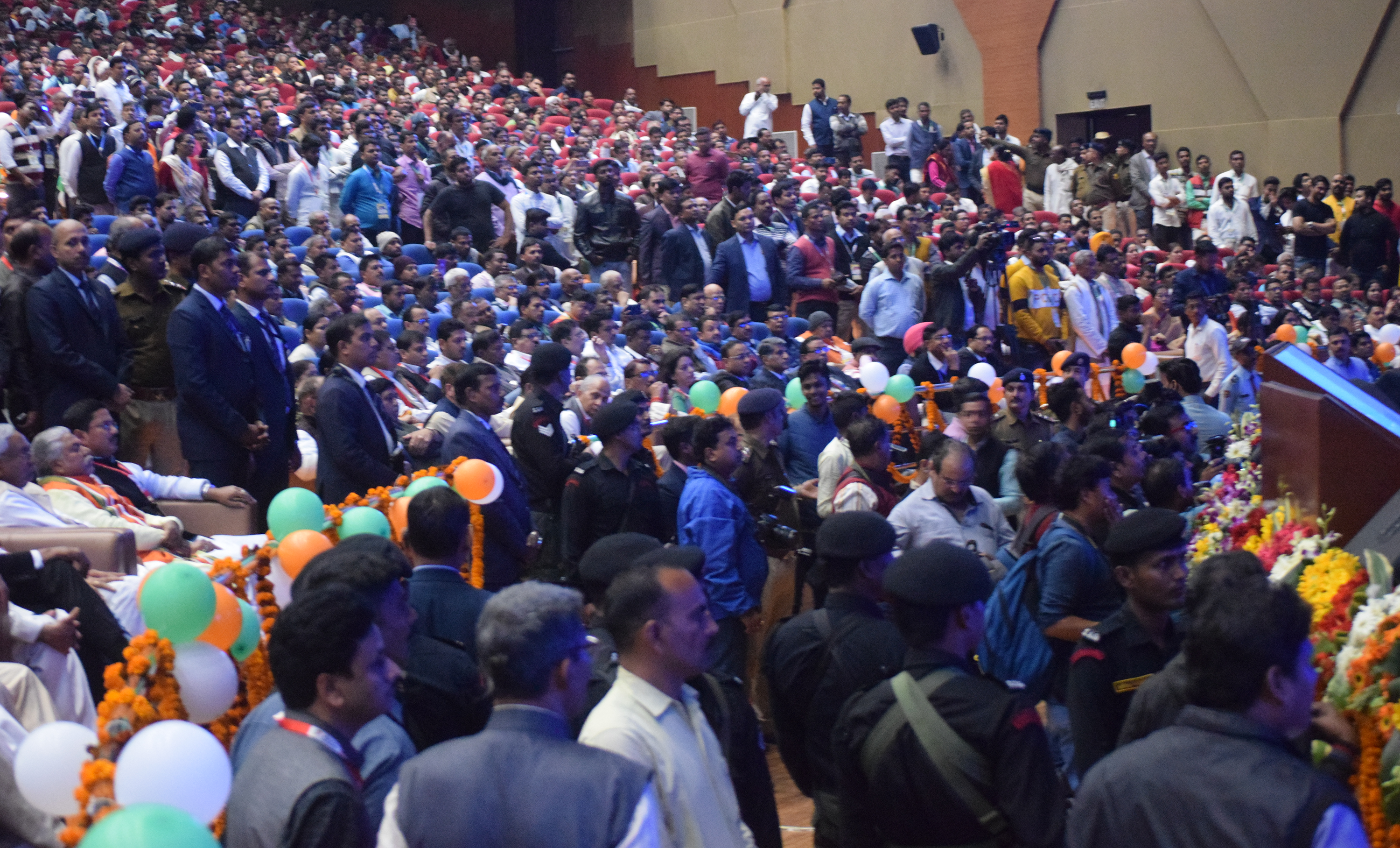 Leave aside the chairs, there was not an inch of space left in India’s largest indoor auditorium Bapu Sabhagar as people jostled with each other to squat at any available place. The CM informed that he got this auditorium made taking inspiration from his China visit.