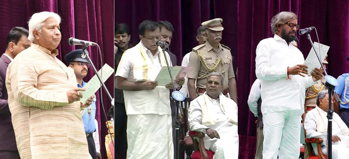 The other two including Ms. Laxmi R Hebbalkar and D Sudhakar from the cooperative background took the oath of office and secrecy on Saturday. Ms. Hebbalkar was given the charge of Women & Child Development, Disabled & Senior-Citizens Empowerment while Sudhakar was sworn in as the Minister of Infrastructure Development, Planning & Statistics.