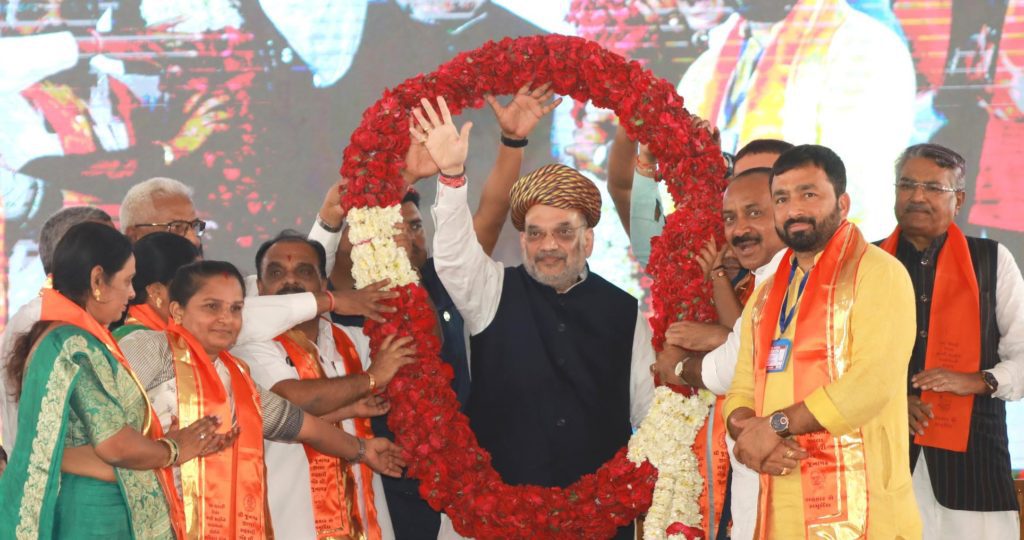 Union Home Minister and Minister of Cooperation, Amit Shah laid the foundation stone of the District Bank Headquarters and inaugurated the APMC Kisan Bhavan at Krishi Shivir in Junagadh on Sunday and motivated farmers to take up natural farming in a big way.