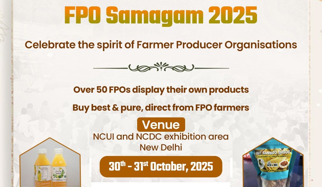 The Ministry of Agriculture and Farmers’ Welfare is organizing a two-day National FPO Samagam 2025 on October 30 and 31 at the NCDC and NCUI Complex in Hauz Khas, New Delhi, bringing together Farmer Producer Organizations (FPOs) from across the country to celebrate their achievements and explore new pathways for strengthening India’s cooperative-driven farm economy.