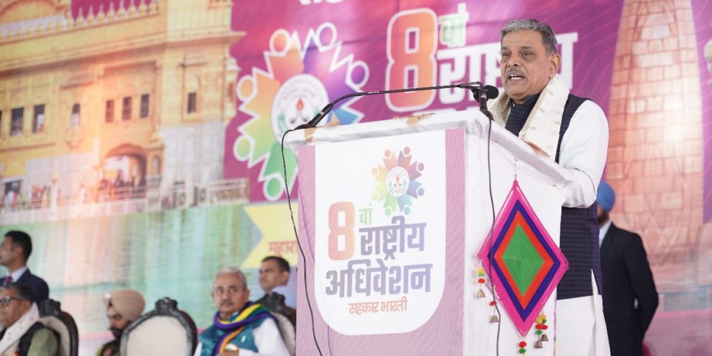 On the second day of the three-day 8th National Convention of Sahakar Bharati, held at the Railway Ground premises on Saturday, during the formal inaugural session, the representatives received guidance from the Governor of Punjab, Shri Gulabchand Kataria, and the General Secretary of the Rashtriya Swayamsevak Sangh, Dattatreya Hosabale, as the Chief Guest.