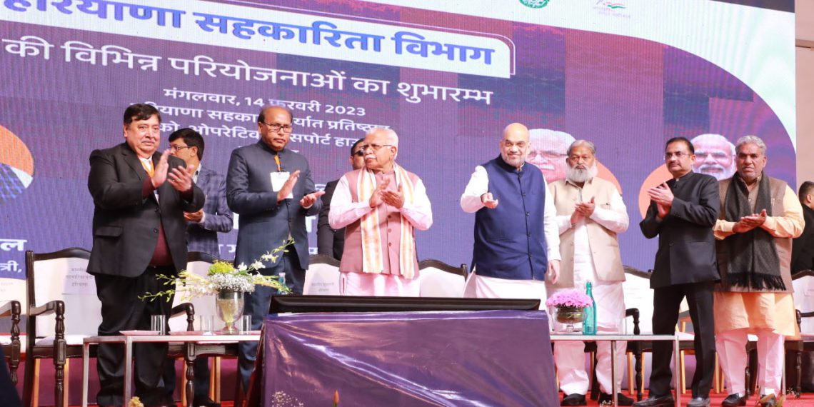 Union Home Minister and Minister of Cooperation Shri Amit Shah laid foundation stones and inaugurated various projects of the Haryana Cooperation Department in Karnal on Tuesday in the presence of Chief Minister Manohar Lal, among others. In his address Shah said that co-ops can prove to be ‘Sanjeevani’ for the poorest of the poor.
