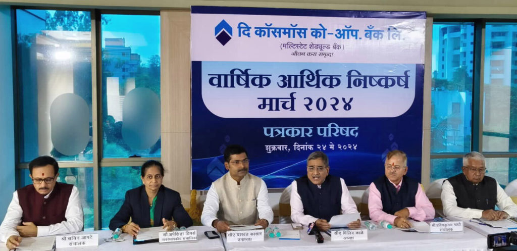 Pune headquartered The Cosmos Cooperative Bank Ltd. has achieved a record-breaking net profit of Rs 384 crore for the financial year ending March 31, 2024, announced Chairman CA Milind Kale at a press conference today.