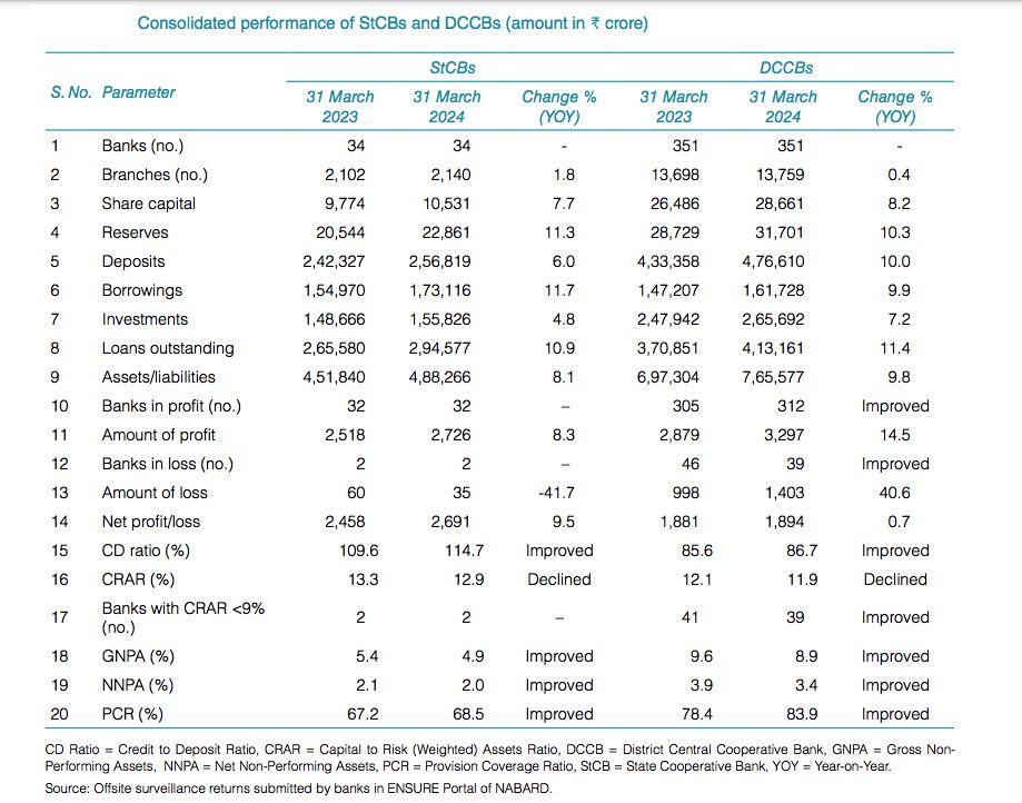 In its Annual Report for 2024-25, NABARD highlighted that India’s cooperative banking sector registered steady growth in FY2024, with both State Cooperative Banks (StCBs) and District Central Cooperative Banks (DCCBs) recording strong performance across financial parameters.