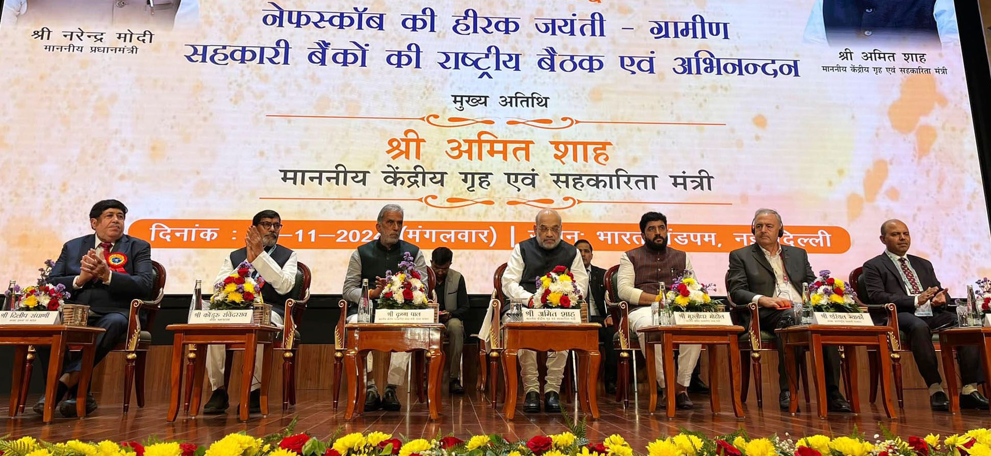 Union Home and Cooperation Minister Amit Shah attended the Diamond Jubilee Celebrations of the National Federation of State Co-operative Banks Limited (NAFSCOB) and a national meeting of Rural Cooperative Banks at Bharat Mandapam in New Delhi on Tuesday.