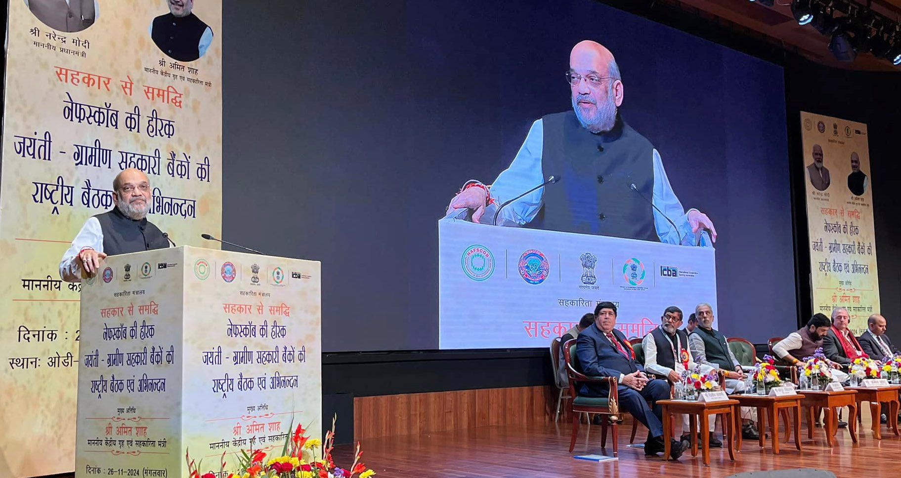 Union Home and Cooperation Minister Amit Shah attended the Diamond Jubilee Celebrations of the National Federation of State Co-operative Banks Limited (NAFSCOB) and a national meeting of Rural Cooperative Banks at Bharat Mandapam in New Delhi on Tuesday.