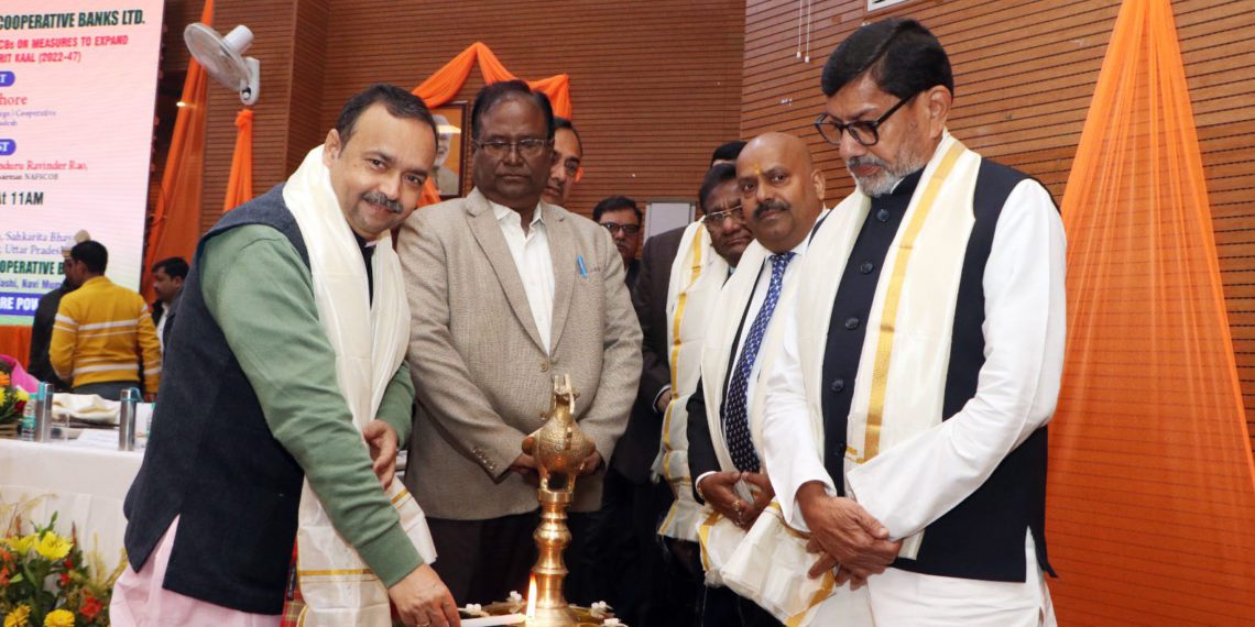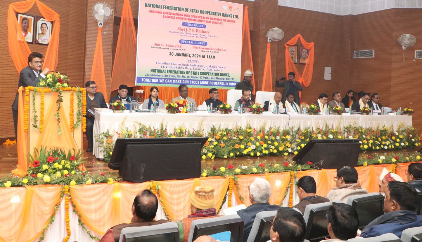 In a series of organizing regional consultation meetings with State Cooperative Banks and DCCBs on measures to expand business growth during Amrit Kaal (2022-47), National Federation of State Cooperative Banks (Nafscob) organized a meeting in Lucknow on Tuesday in which UP Cooperation Minister JPS Rathore was the chief guest.