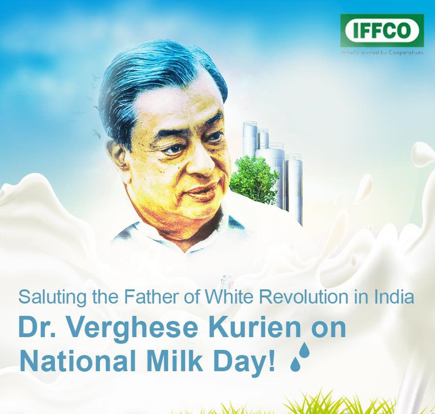 IFFCO MD Dr U Awasthi remembered Kurien by writing on his twitter wall, “Remembering Dr. Verghese Kurien, father of White Revolution, on his birth anniversary being celebrated as #NationalMilkDay. His “billion-litre idea” transformed India’s milk state. I salute our #Dairy Farmers for their effort in helping the country to achieve self-sufficiency in Milk”.