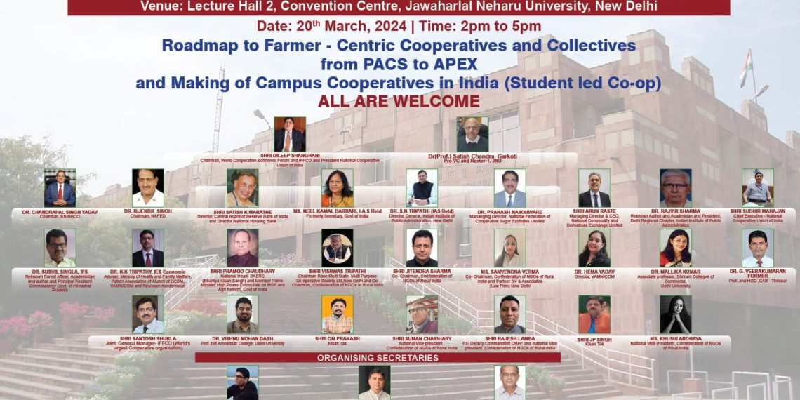 Key stakeholders from JNU and the National Cooperative Union of India (NCUI) will convene to chart a path towards integrating farmer cooperatives into the academic sphere.The meeting, organized jointly by JNU, NCUI, and the World Cooperative Education Foundation (WCEF), will commence at 2 pm and extend until 5 pm at the prestigious JNU Convention Centre, Lecture Hall 2.