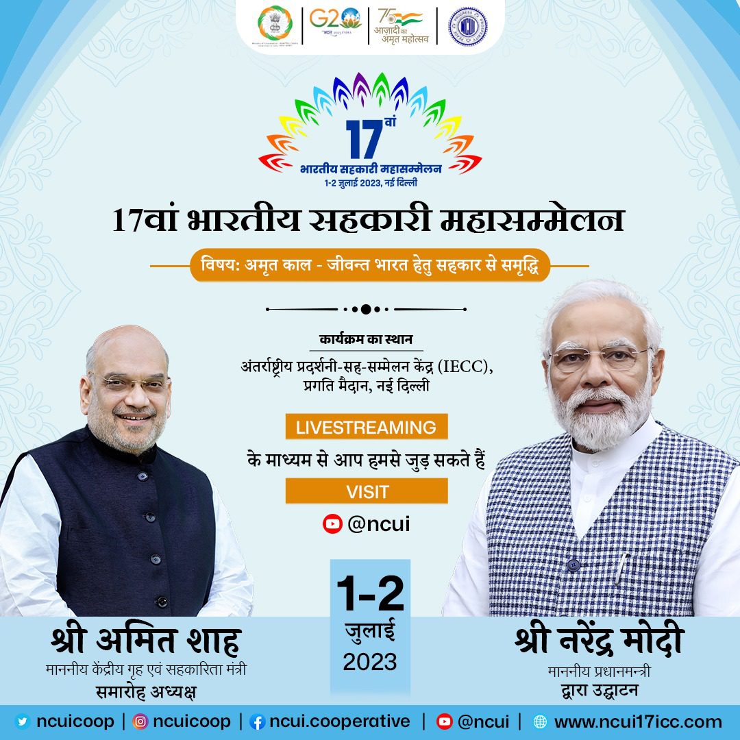 ???????? ??? ?? ???? ????? ???? ?????? ???????? ?????????? (1-2 ????? 2023) ?? ???????? ??????? ?? ?????@narendramodi @PMOIndia @AmitShah @Dileep_Sanghani @MinOfCooperatn @CSCegov_#PMatICC#17IndianCooperativeCongress#NCUI_ICC2023#VibrantIndia#SahkarSeSamriddhi… pic.twitter.com/oThgkIk0qy