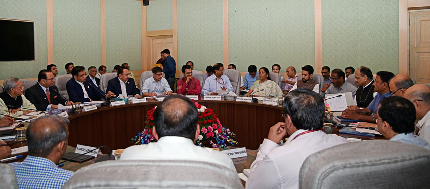 The Union Minister for Finance and Corporate Affairs, Smt. Nirmala Sitharaman chairing the 2nd Pre-Budget consultation meeting with the representatives of Industrial Services & Trade Associations, in New Delhi on June 11, 2019.