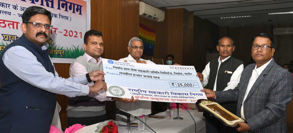 The awards were given in three categories: in the best PACCs category, the first prize, and second prize were given to Nimod Gram Seva Sahakari Samiti, Nagaur, and Rampur Gram Seva Sahakari Samiti, Hanumangarh respectively.