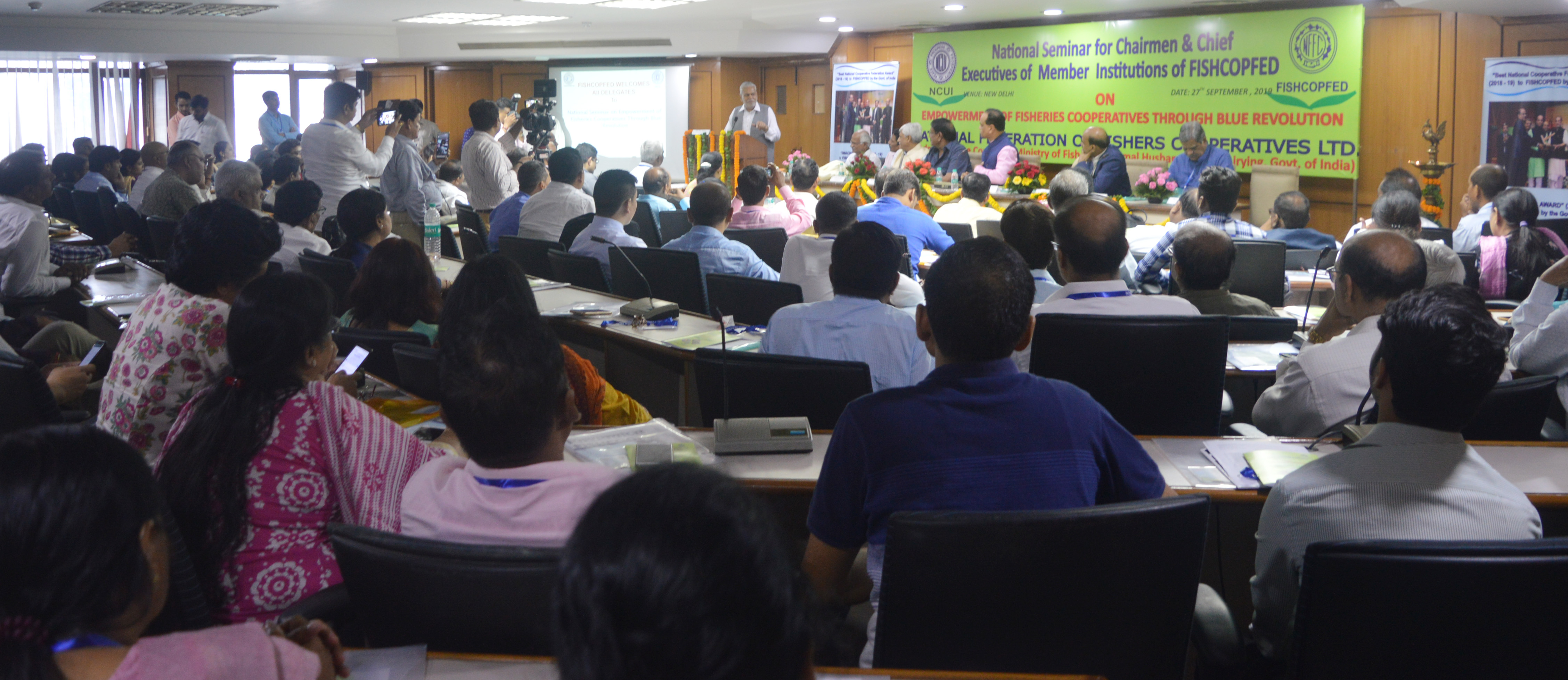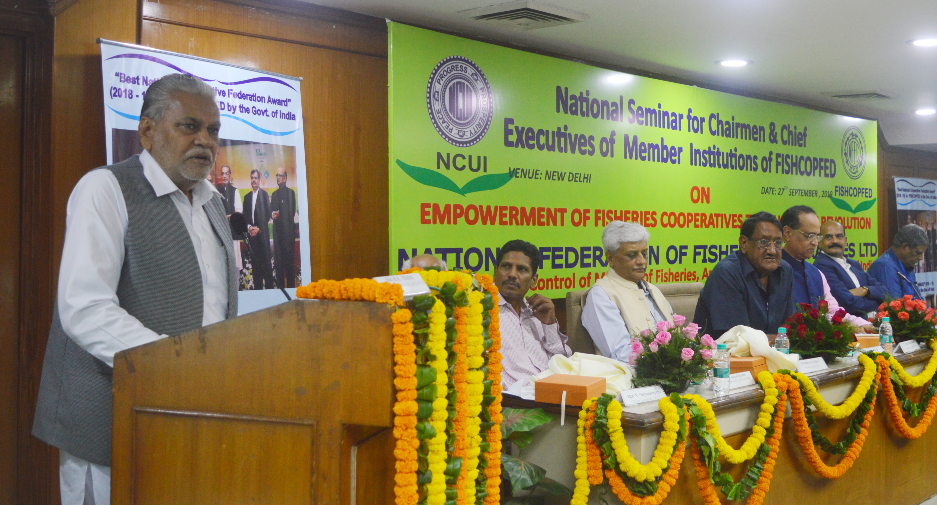 The apex body of fisheries co-ops in the country Fishcopfed organized a National Seminar on the theme of “Empowerment of Fisheries Cooperatives through Blue Revolution” at the NCUI headquarters in Delhi on Friday. Union State Minister Parshottam Rupala was the Chief Guest.
