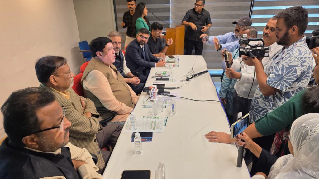 Notable dignitaries present at the press conference included Dr. Bharatbhai Patel, Chief Sponsor of Agri Asia, Sanyal Desai of Radical Communications, Aniket Bhosale from L\&T Finance, and Murtuja Patel, President of IGMA.