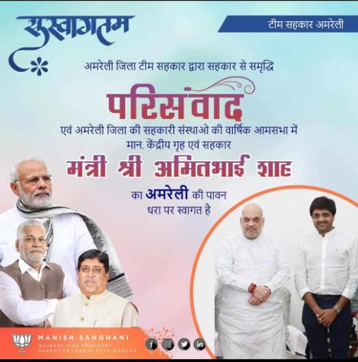 NCUI President and an influential co-operator from Gujarat, Dileep Sanghani is organizing combined AGMs of several co-op organizations in Amreli on Sunday. To cut costs, Sanghani has been doing this every year but this time the event has acquired special significance due to the participation of Union Minister Amit Shah in the event.