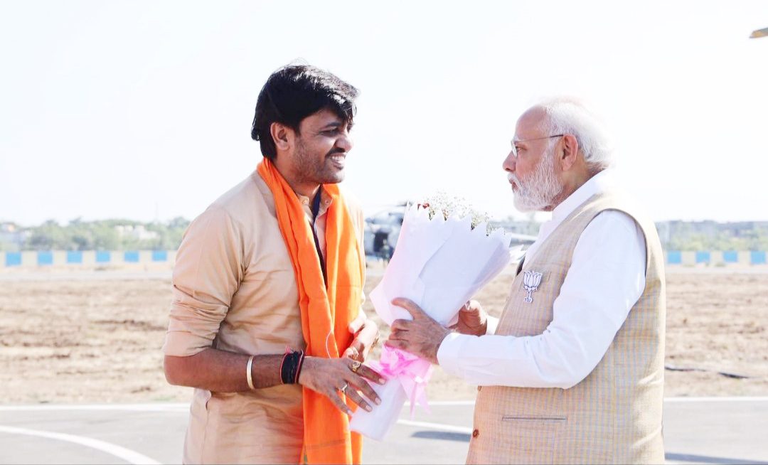 The event was the visit of the prime minister to Amreli for an election rally. Being a senior most leader who has been entrusted to ensure victory in all the five assembly constituencies in Amreli, Sanghani was at the forefront of welcoming the Prime Minister.