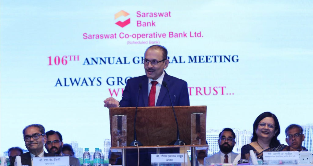 Saraswat Bank, India’s largest Urban Co-operative Bank, held its 106th Annual General Meeting on Saturday, 27th July 2024, at B.N. Vaidya Sabhagrah, Raja Shivaji Vidyasankul, Dadar, Mumbai.