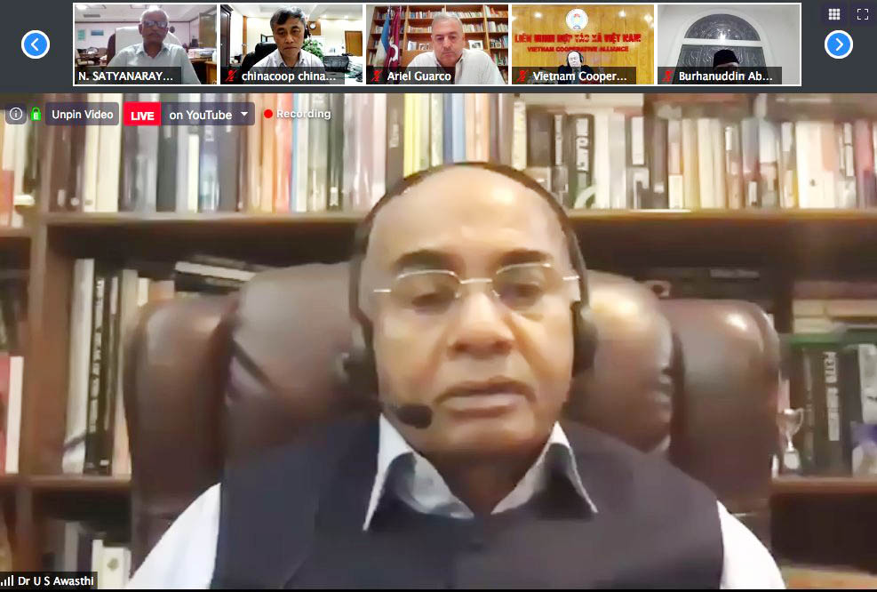 Moderated by ICA AP Regional Director Balu Iyer, the Webinar was presided over by ICA President Ariel Gaurco. Top co-operators of the region including ICA AP Chairman Li Chunsheng, NCUI President Dr Chandra Pal Singh Yadav, IFFCO MD Dr U S Awasthi, among others were present.