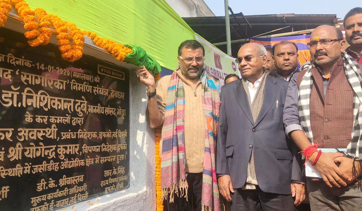 BJP MP from Godda Nishikant Dubey laid the foundation stone of ”IFFCO Product Sagarika Production Unit” at Jasidih Industrial Area, Deoghar on Tuesday. IFFCO MD Dr U S Awasthi was also present on the occasion. Besides, Deoghar MLA Narayan Das, IFFCO Marketing Head Yogendra Kumar and local DM and several other important persons of the area were present during the inauguration.