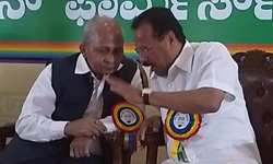 Welcoming the guests Yogendra Kumar who had come all the way from Delhi to receive the union minister Sadanand Gowda thanked him profusely for making it possible to attend the meeting. ”We had met him once in his office and we were struck by his simplicity and commitment for the cause of farmers”, said Kumar in his brief introduction.