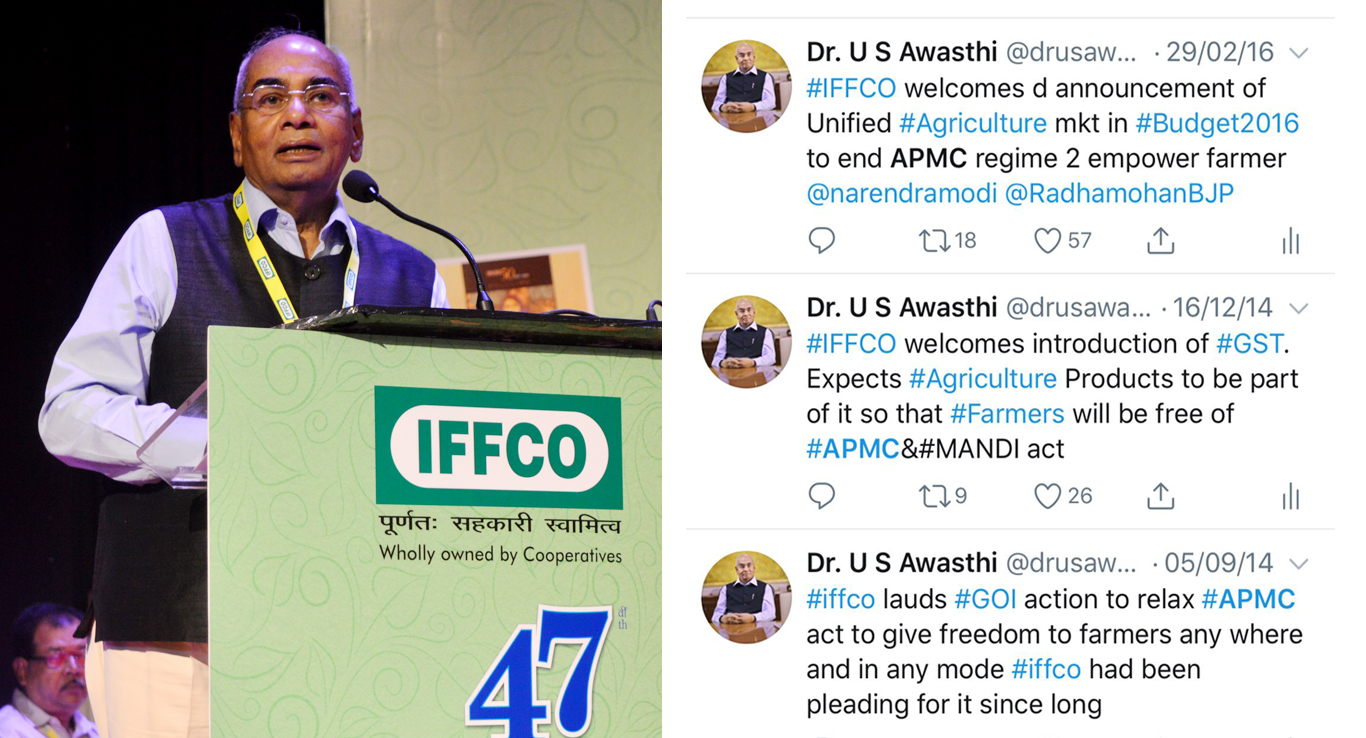 Welcoming the decision the IFFCO MD tweeted “I welcome the step of the removal of the APMC act for the benefit of farmers. It’s been years since I am urging governments to finish the monopoly of APMC regime by scraping it so our farmers can get good returns on their yield. Congratulations to PM Sh @narendramodi Ji & @nstomar ji”.